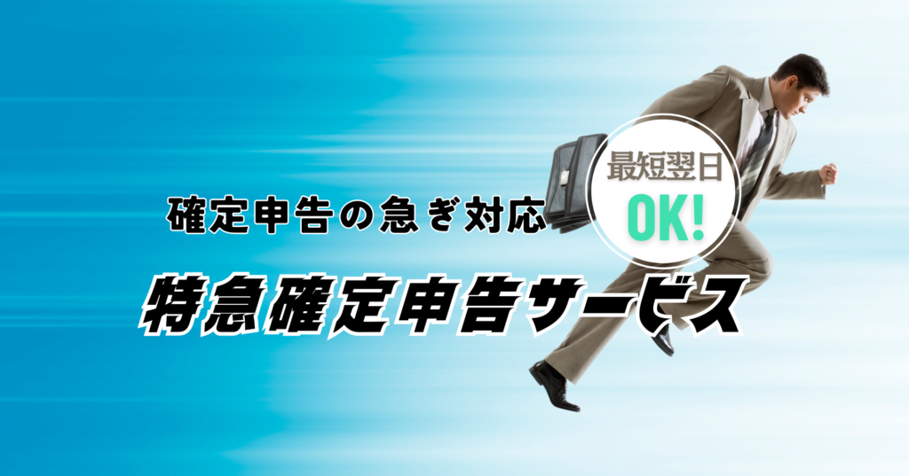 「急ぎの確定申告」「ギリギリ申告」に多数対応。